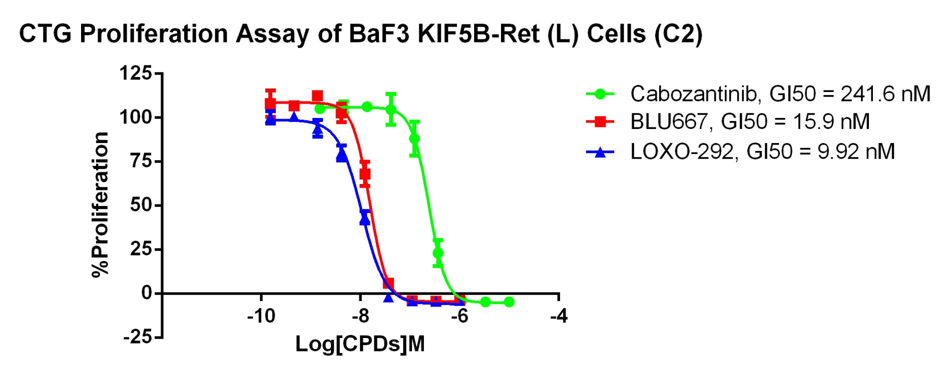 Figure 2. CTG Proliferation Assay of BaF3 KIF5B-Ret (L) Cells (C2).