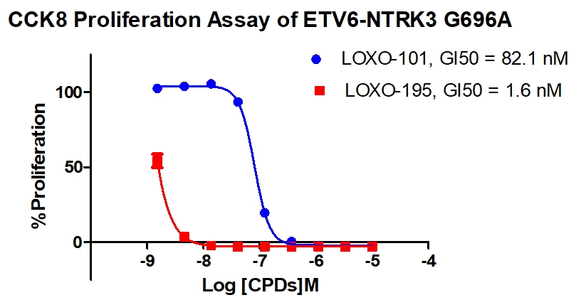 Figure 4. CCK8 Proliferation Assay of ETV6-NTRK3 G696A. |
