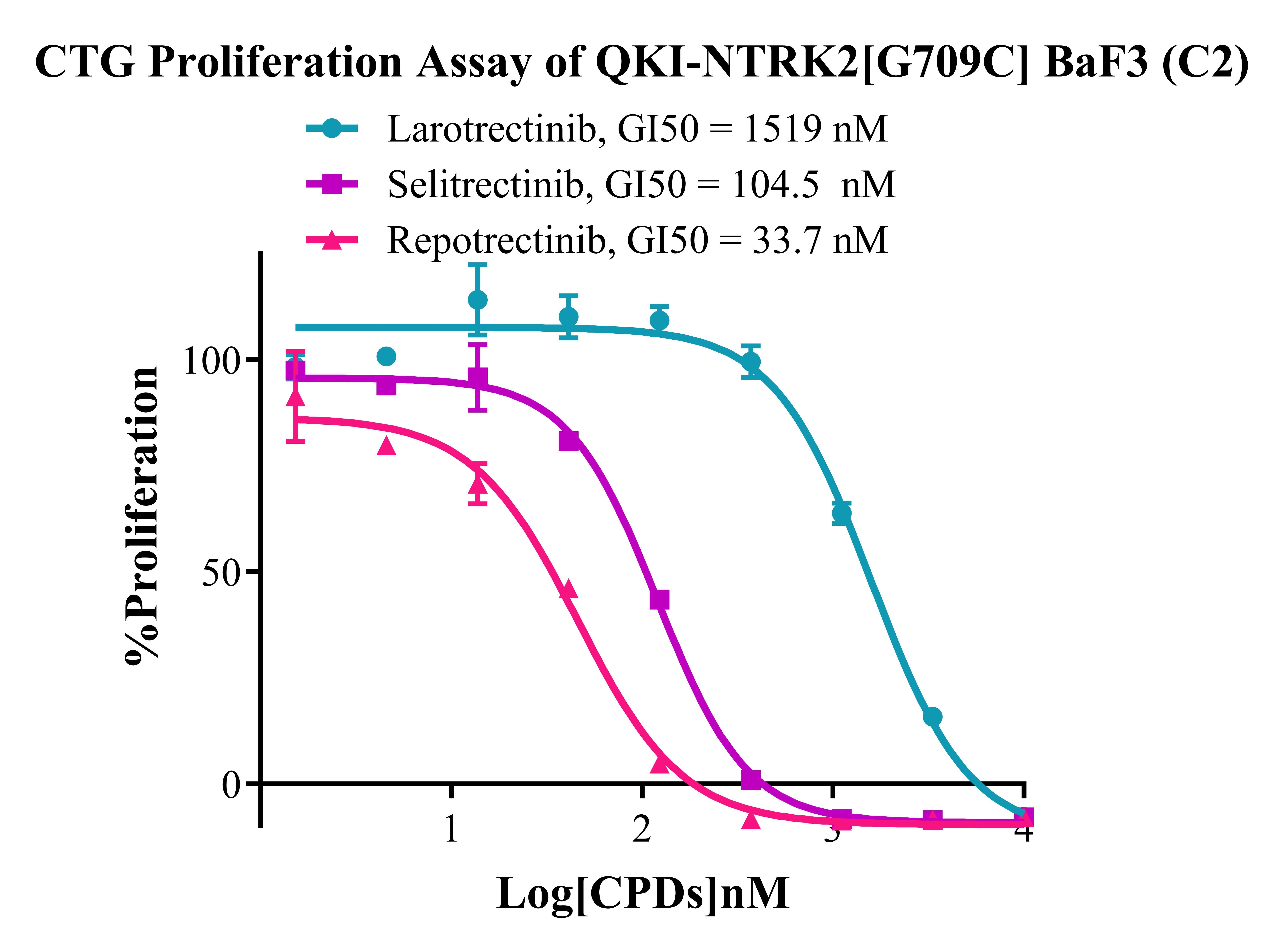 Figure 2. CTG Proliferation Assay of QKI-NTRK2 [G709C] BaF3(C2). |