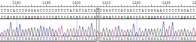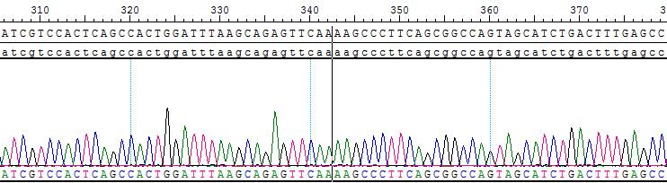 Figure 3. Sanger of BCR-ABL1 [E255V/T315I]/BaF3.