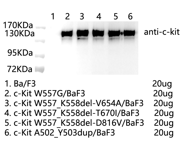 1.WB of c-Kit W557_K558del-V654A/BaF3