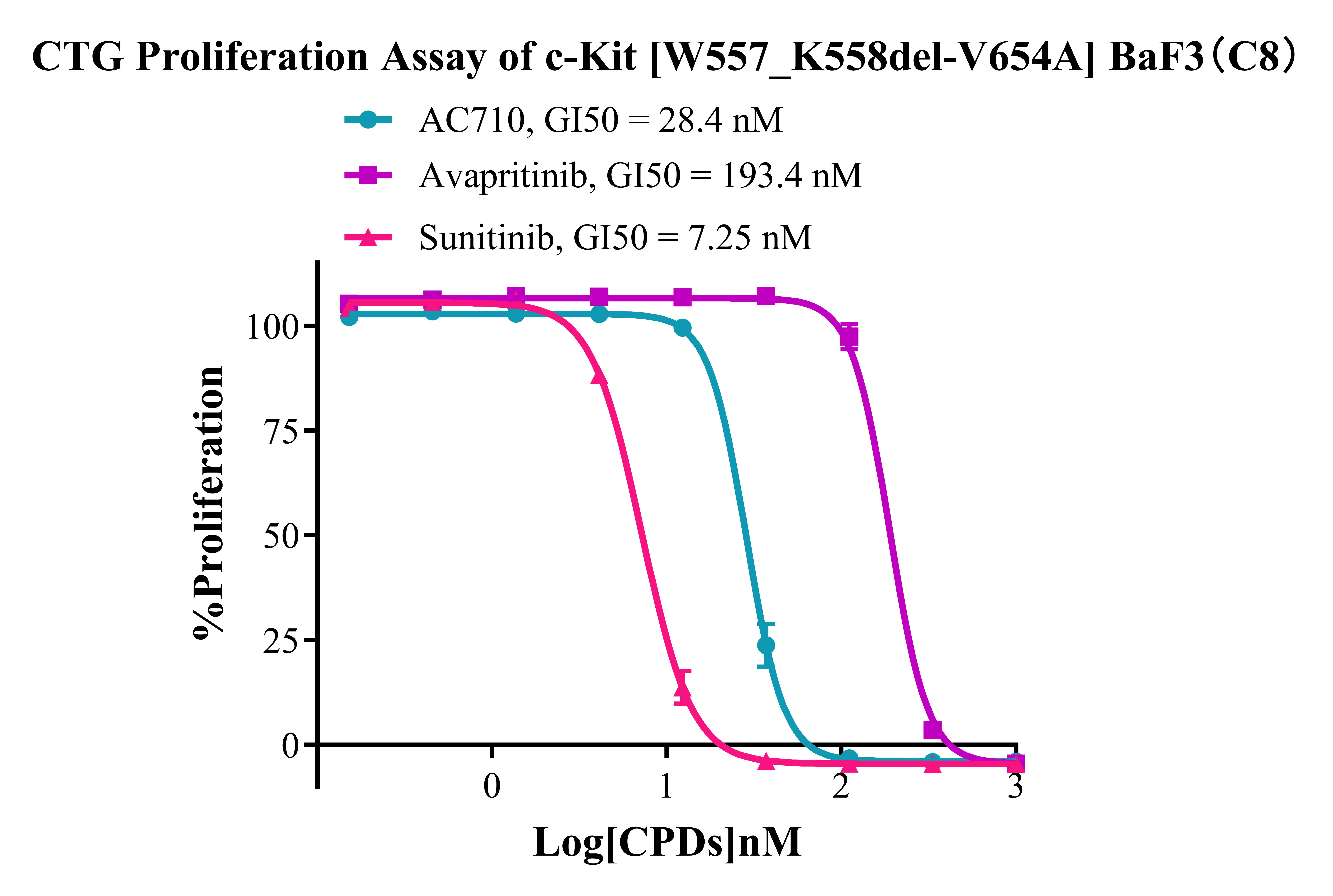 Figure 5. CTG Proliferation Assay of  c-Kit [W557_ K558del-V654A] BaF3(C8).
