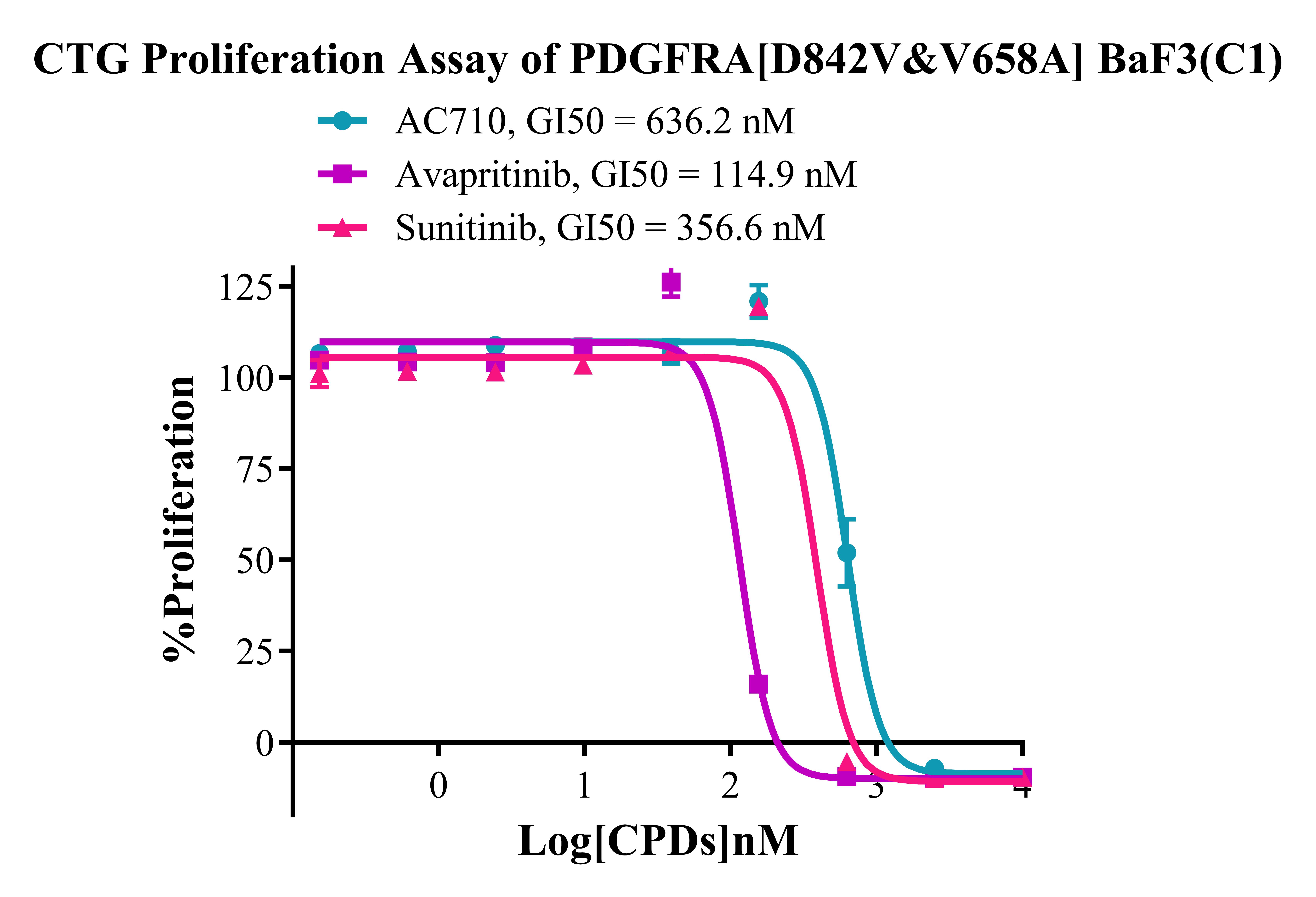 Figure 5. CTG Proliferation Assay of PDGFRA [D842V&V658A] BaF3(C1).