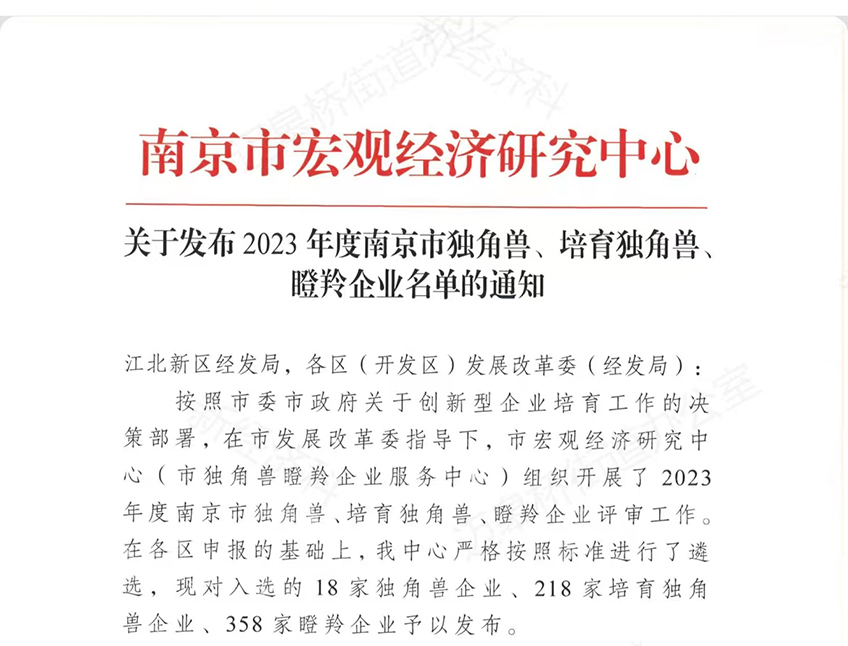 科佰生物入選“2023年度南京市瞪羚企業(yè)”