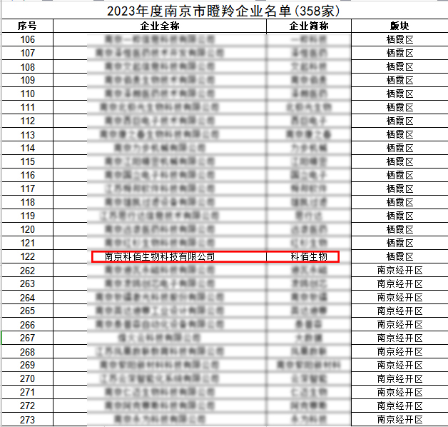 【喜報(bào)】科佰生物入選“2023年度南京市瞪羚企業(yè)”