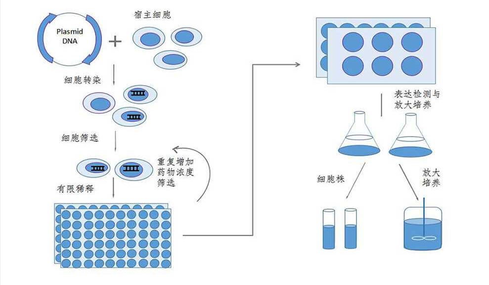 穩(wěn)定細(xì)胞株構(gòu)建的基本原理是用基因?qū)牍ぞ呋蚧蚓庉嫻ぞ?,改造原始?xì)胞基因組,使改造后的細(xì)胞具有某些特定表型,并經(jīng)過抗性篩選或其他篩選方法,使其表型能長期傳代穩(wěn)轉(zhuǎn)。