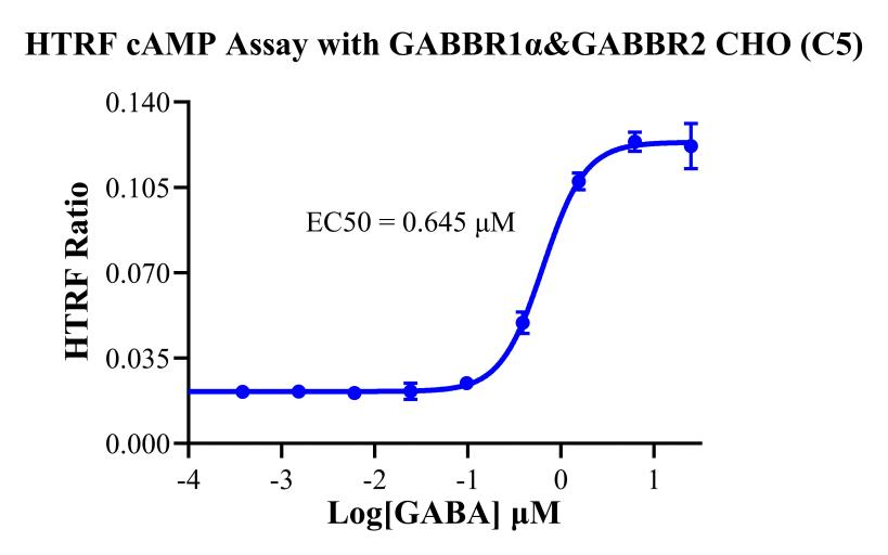 為助力GABABR靶點藥物研發(fā),南京科佰開發(fā)GABBR1α&GABBR2 CHO和GABBR1β&GABBR2 CHO細胞篩選模型。部分細胞產(chǎn)品驗證結(jié)果如下: