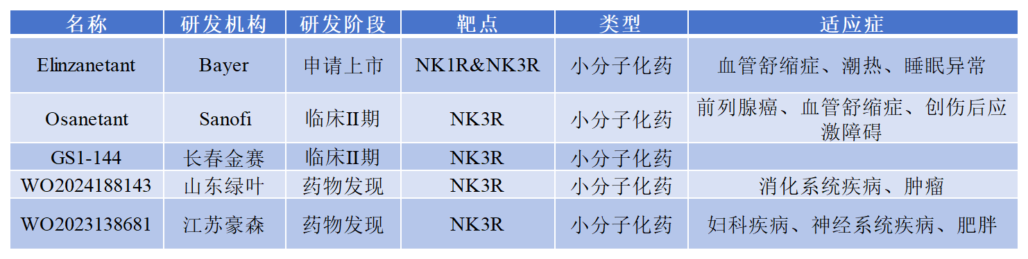 Fezolinetant(非唑奈坦)是全球首個可口服的非激素類NK3R拮抗劑,用于治療因絕經(jīng)引起的中度至重度血管舒縮癥狀(VMS)。2024年12月22日,長春金賽藥業(yè)旗下產(chǎn)品GS1-144開展治療絕經(jīng)期血管舒縮癥的二期臨床試驗。