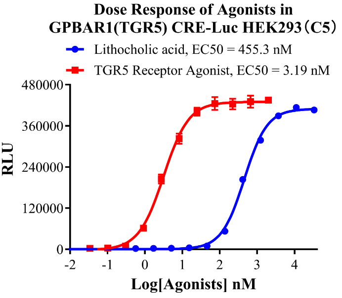 為了助力TGR5藥物的研發(fā),科佰生物及時(shí)開發(fā)了基于CREB/cAMP信號通路的TGR5細(xì)胞模型,用于候選藥物早期機(jī)理研究。