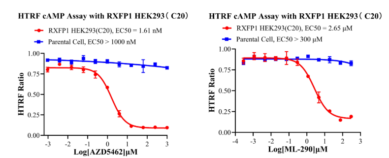 為助力RXFP1靶點(diǎn)藥物研發(fā),南京科佰開(kāi)發(fā)了RXFP1 CHO、RXFP1 HEK293細(xì)胞篩選模型,產(chǎn)品驗(yàn)證結(jié)果如下: