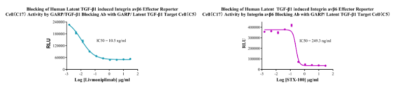 為助力GARP/LTGF-β 靶點藥物研發(fā),南京科佰開發(fā)了GARP/Latent TGF-β1 Target Cell、GARP/Latent TGF-β1 CHO細胞篩選模型,產(chǎn)品驗證結果如下: