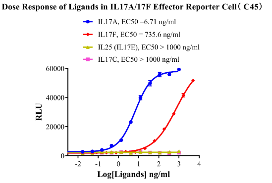 為了助力IL17相關(guān)靶點(diǎn)藥物的研發(fā),科佰生物分別開發(fā)了針對(duì)IL17A/F和IL25的細(xì)胞模型,用于候選藥物早期機(jī)理研究。部分結(jié)果如下: