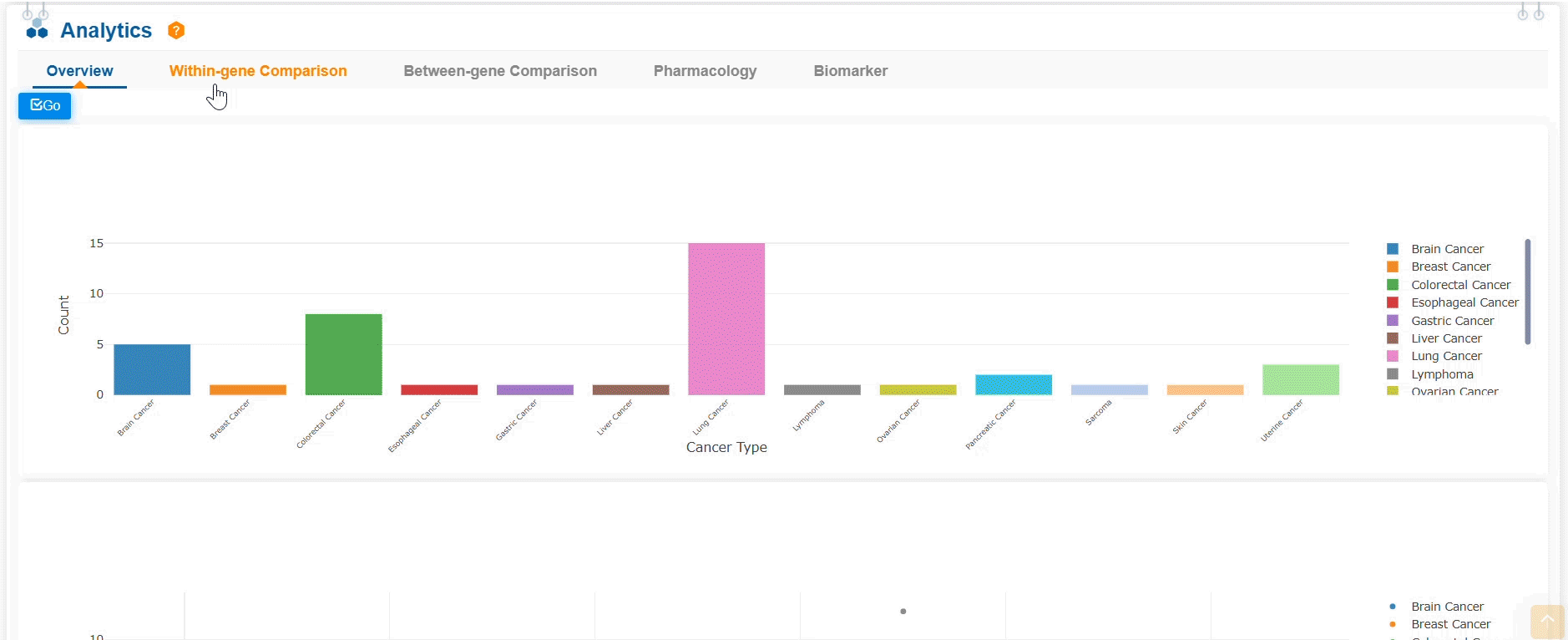5.使用“基因內(nèi)比較”功能,分析目標基因的基因表達、基因拷貝數(shù)變異與基因突變之間的關(guān)系。