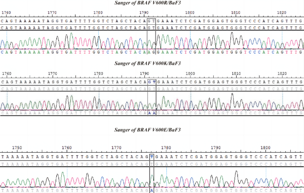 Figure 1. Sanger of different BRAF cells.