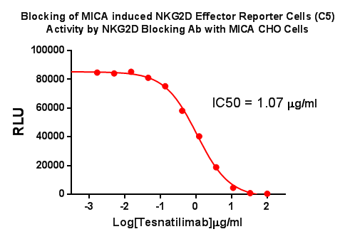 Figure 3. Blocking of MICA induced NKG2D Effector Reporter Cells (C5) Activity by NKG2D Blocking Ab with MICA CHO Cells.