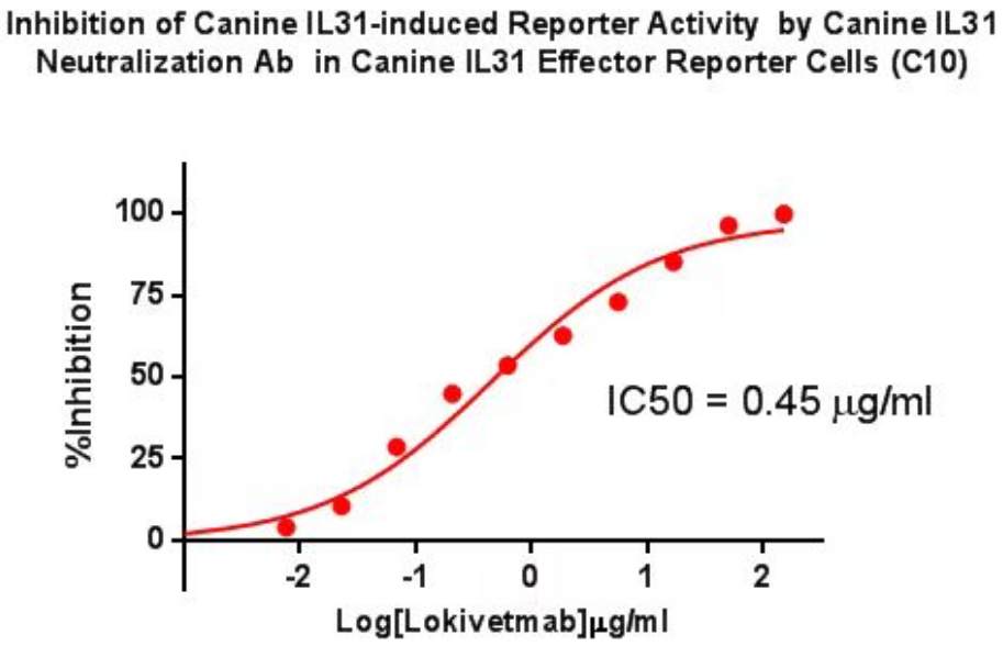 Figure 4. Inhibition of Canine lL31-induced Reporter Activity by Canine lL31 Neutralization Ab in Canine lL31 Effector Reporter Cells(C10).